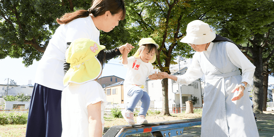 大阪信愛学院は「キリストに信頼し、愛の実践に生きる」を建学の精神に、「キリストの教えに根ざした教育」「一人ひとりを大切にする教育」「能力の開発を目指す教育」「自己形成を促す教育」「社会貢献への態度を形成する教育」を実践しています。 幼稚園で過ごす人生最初の3年間は、人格の大切な部分が形成される貴重な時期。私たち保育者は聖母マリアの心をもって、お預かりしている子どもたち一人ひとりに寄り添い、心を尽くして保育にあたっています。